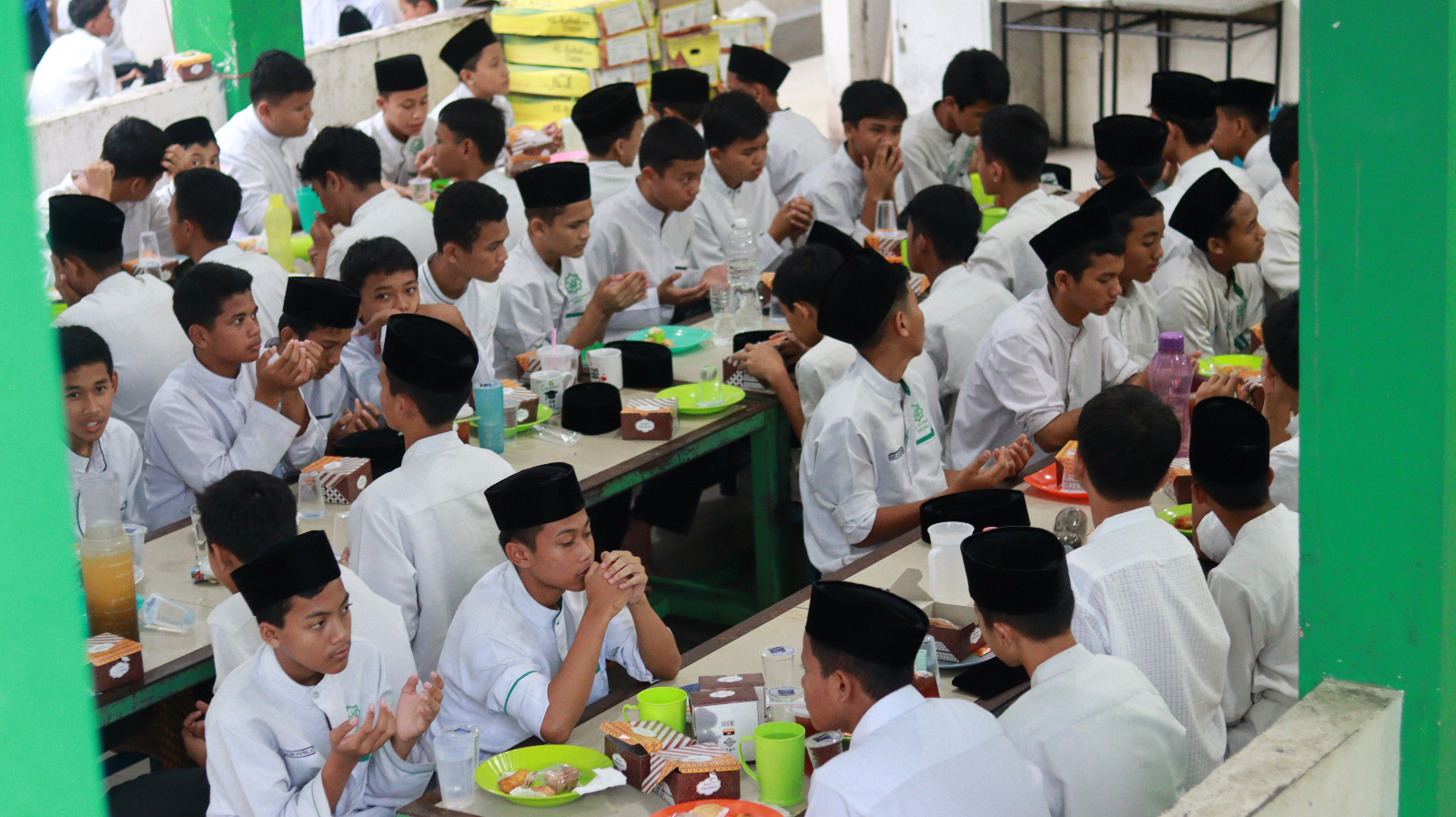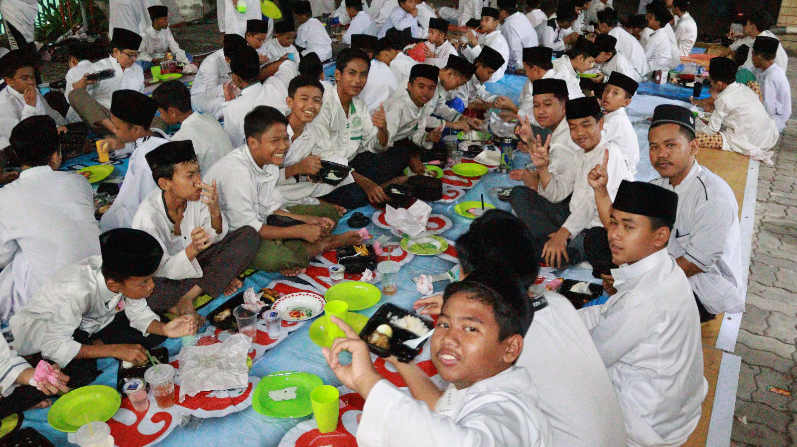 Seluruh santriwan/ti mendapatkan makanan hidangan buka puasa dari DSNI amanah