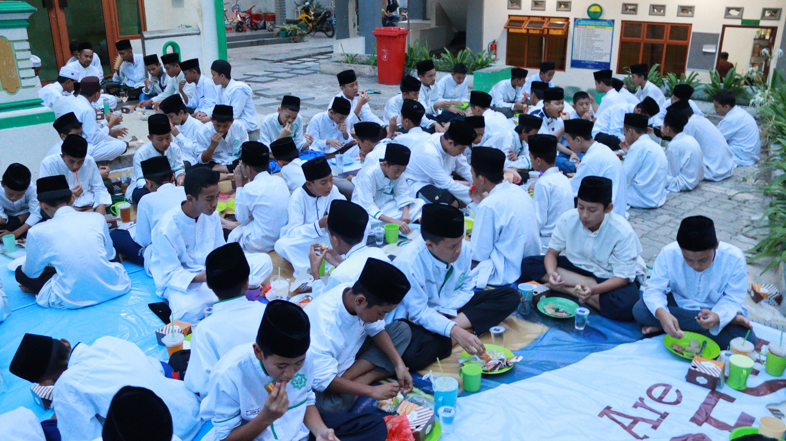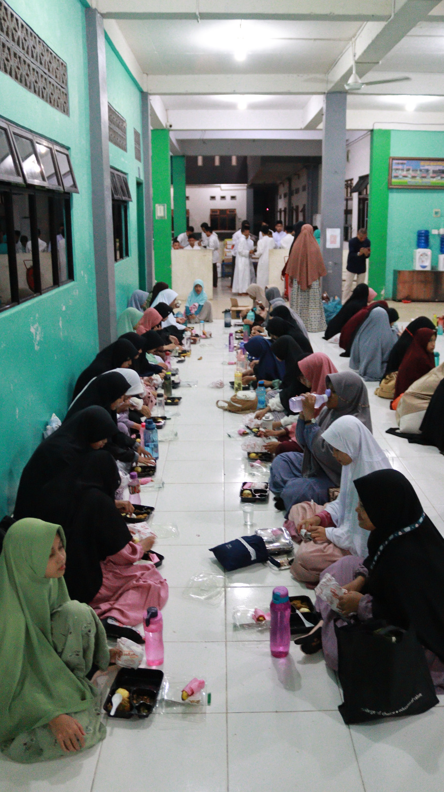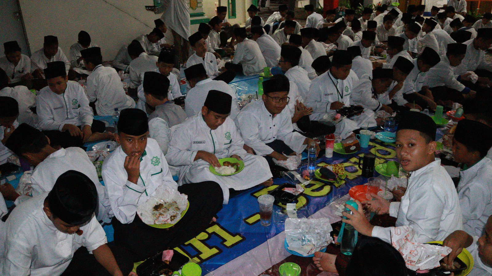 Momen buka puasa bersama seluruh santriwan/ti dengan menyantap hidangan yang disediakan