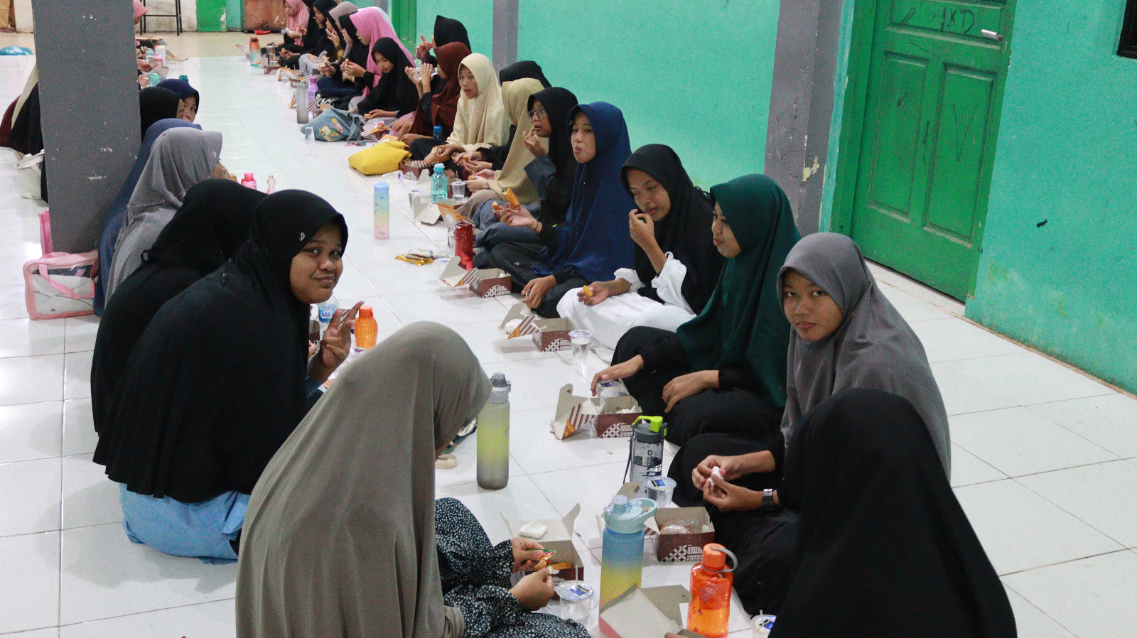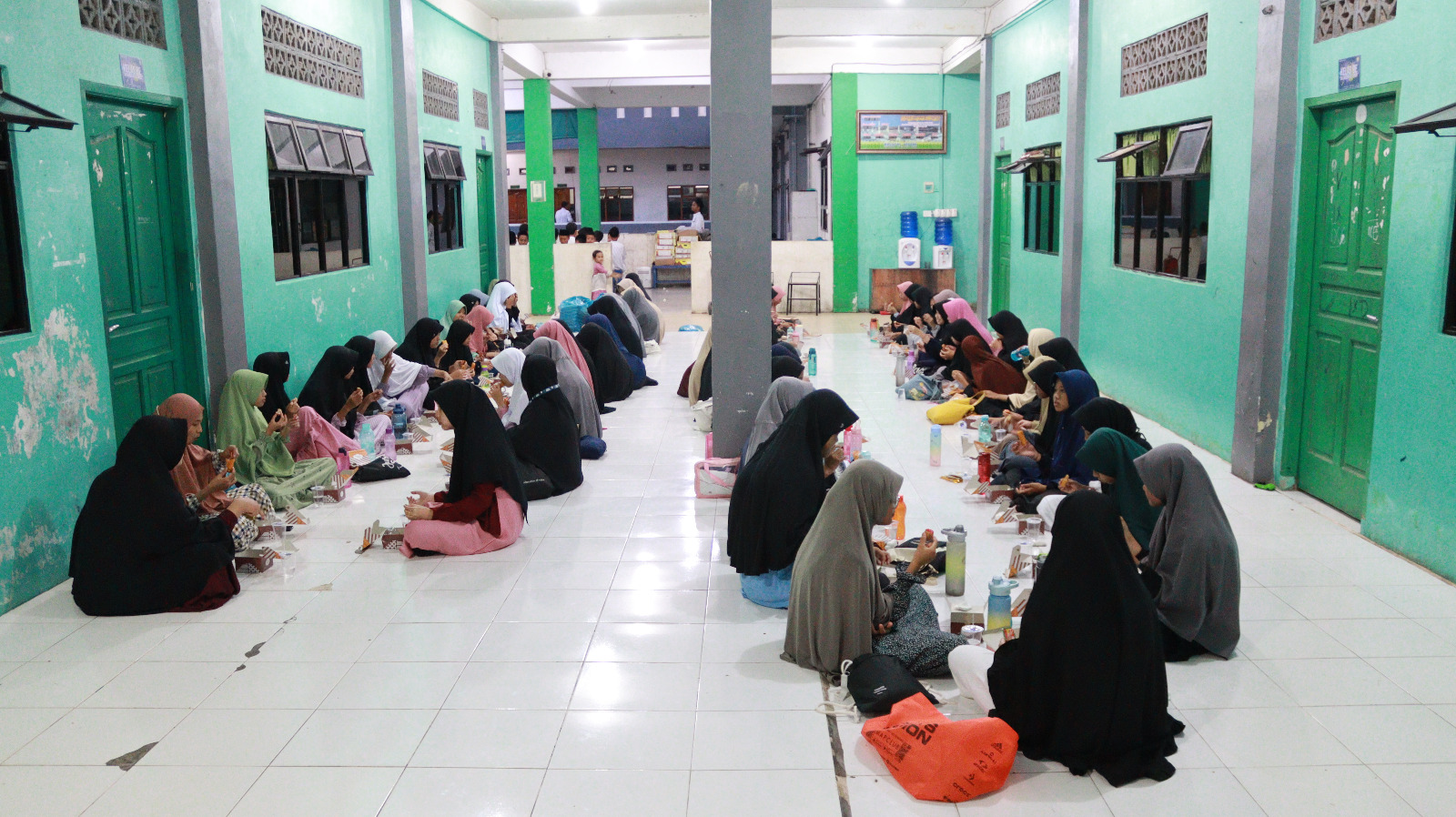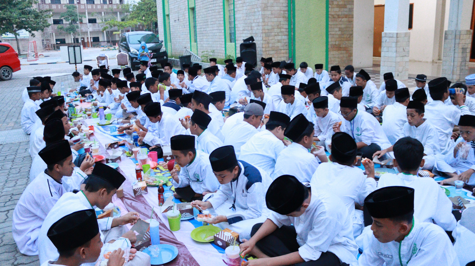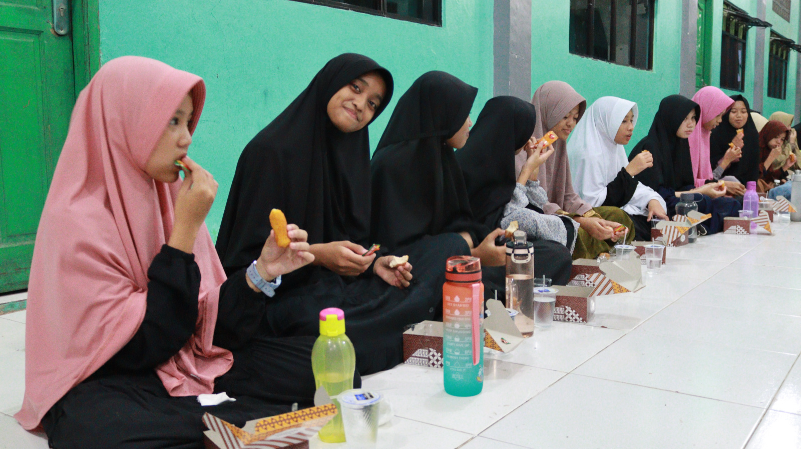 Momen buka puasa bersama seluruh santriwan/ti dengan menyantap hidangan yang disediakan